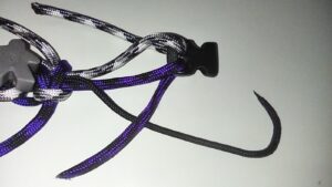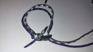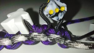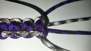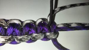 Slide the item down the thin core and loop the 225 cord back with the 550 cores.